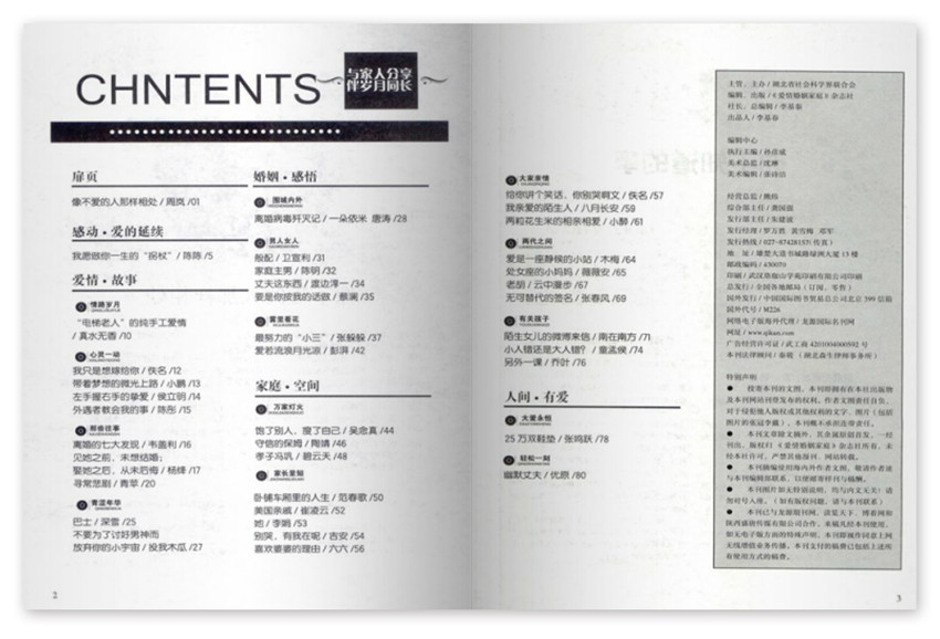 《愛情婚姻家庭》雜志由當初的一報一刊發(fā)展到現(xiàn)在的《愛情婚姻家庭》雜志旬刊——上旬刊《生活紀實》;中旬刊《冷暖人生》,2008年10月冷暖人生版改版為《新情男女》;下旬刊《私房心情》及《真情》上下半月5個刊物。期發(fā)行量一直保持在一百萬份左右,歷年來被評為湖北省期刊、湖北雙十佳期刊,并榮獲中國期刊方陣“雙效期刊”稱號。