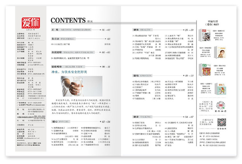 《愛你·健康讀本》的主要欄目:健康觀察、健聞、健心、健體、健情、健談、健腦等;