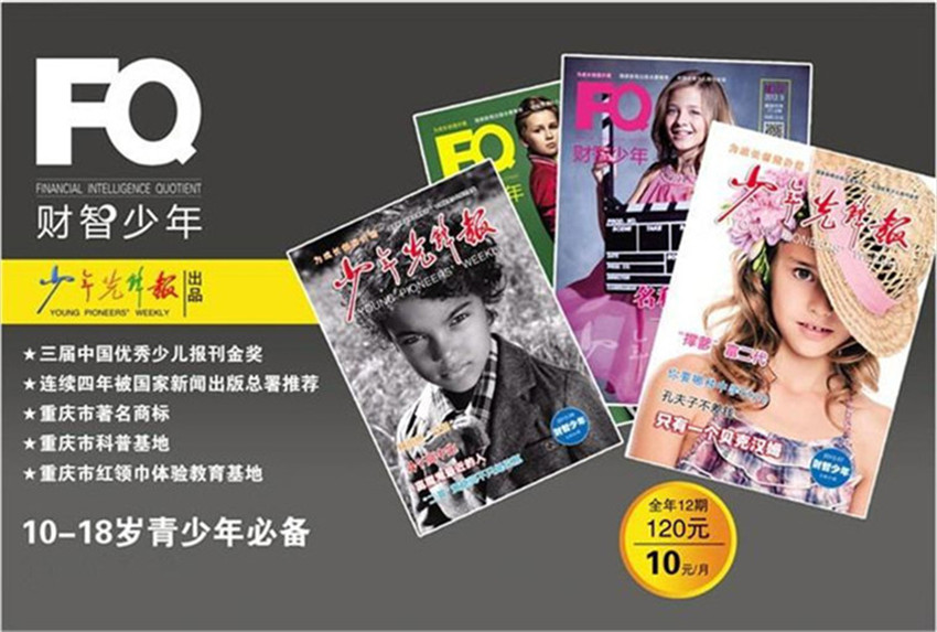 《少年先鋒報(bào)·財(cái)智少年》植根于中國(guó)少兒報(bào)刊金獎(jiǎng)刊物、重慶市少年隊(duì)隊(duì)報(bào)《少年先鋒報(bào)》,是一份由共青團(tuán)重慶市委主管主辦、面向全國(guó)公開發(fā)行的00后創(chuàng)富指導(dǎo)讀物。