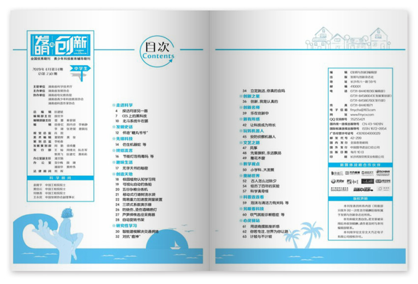 《發(fā)明與創(chuàng)新》雜志創(chuàng)辦于1984年,注重理論聯(lián)系實際,創(chuàng)刊多年來得到了長足發(fā)展,雜志內(nèi)容充實、版式清新,裝幀精美,深受廣大讀者好評。將科學(xué)知識、發(fā)明創(chuàng)新融入學(xué)生的生活與學(xué)習(xí),展示學(xué)生自己的發(fā)明創(chuàng)新作品和有趣的科學(xué)小實驗,分享學(xué)生和老師的科技創(chuàng)新心得,是同學(xué)們激發(fā)探究興趣、體會發(fā)明樂趣、開發(fā)創(chuàng)新潛能的良師益友。