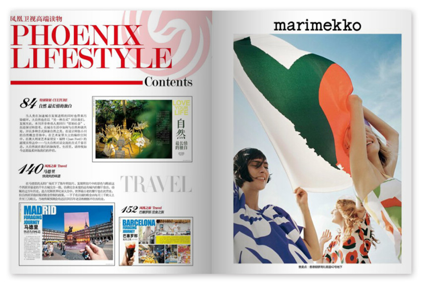 獲得中國國務院新聞辦公室和中國國家新聞出版署特許,通過中國圖書貿易進出口總公司,在中國大陸內地發(fā)售的頂級時尚生活月刊。鳳凰衛(wèi)視董事局主席劉長樂先生親自擔任鳳凰周刊有限公司董事長和出品人。