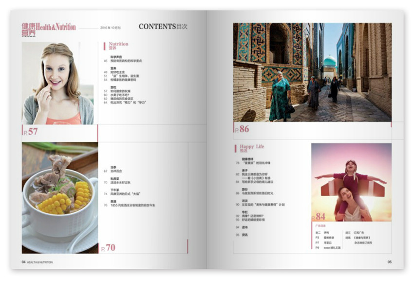 把握潮流理念,分享健康生活方式,提供多方位營養(yǎng)資訊,關(guān)愛精英生活,推動健康升級,著力打造健康、自由的生活理念,以最快的速度,以最專業(yè)的手法,較大化地為客戶和讀者創(chuàng)造價值,主要欄目:我們推薦,科學(xué)聲音,健康榜樣,大廚上菜,以提升健康素養(yǎng)為己任,并與衛(wèi)生系統(tǒng)機構(gòu)中國疾病預(yù)防控制中心聯(lián)合開設(shè)專題欄目,面向城市精英普及營養(yǎng)科學(xué)的雜志。