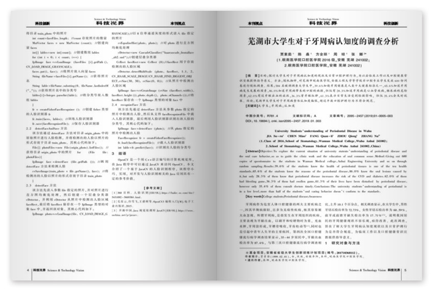 蕪湖市大學(xué)生對(duì)于牙周病認(rèn)知度的調(diào)查分析,目的:探討大學(xué)生對(duì)于牙周病認(rèn)知度的現(xiàn)狀及日常口腔護(hù)理行為,為以后臨床工作以及口腔健康常識(shí)宣教提供指導(dǎo)意義。方法:隨機(jī)抽樣,對(duì)蕪湖市皖南醫(yī)學(xué)院,安徽工程大學(xué)等學(xué)校非口腔專業(yè)學(xué)生發(fā)放600份問(wèn)卷進(jìn)行隨機(jī)調(diào)查。