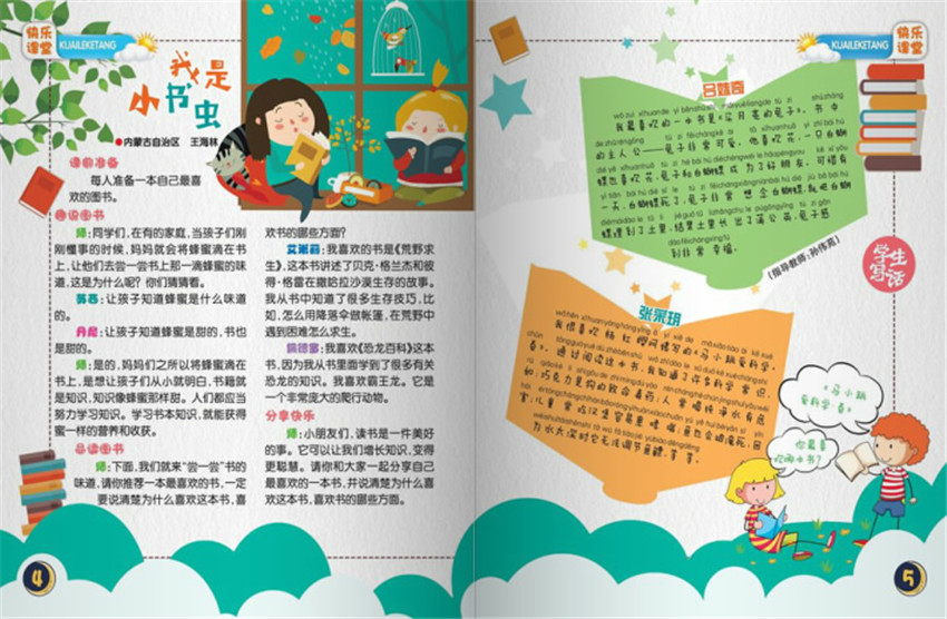 《快樂(lè)作文》“快樂(lè)課堂”欄目緊密配合“人教版”“冀教版”“蘇教版”等各版本教材中的作文訓(xùn)練內(nèi)容,與作文教學(xué)同步,內(nèi)容體現(xiàn)教學(xué)過(guò)程和教法、學(xué)法,使學(xué)生高高興興、輕輕松松學(xué)作文。