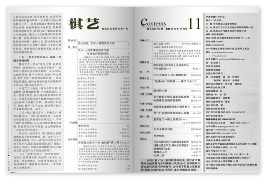 以傳播優(yōu)秀文化,推廣全民閱讀為使命,培養(yǎng)閱讀習(xí)慣,不斷提升文化素質(zhì)和生活品質(zhì),并且不斷推動(dòng)行業(yè)發(fā)展,集創(chuàng)新性,專業(yè)性和知識(shí)性于一體的棋藝運(yùn)動(dòng)雜志。創(chuàng)刊多年來以其編輯、作者隊(duì)伍的專業(yè)性,與生活實(shí)際的貼近性,贏得廣大小讀者的喜愛和業(yè)內(nèi)人士的廣泛好評(píng),多方位提升讀者的閱讀品位,適合棋藝運(yùn)動(dòng)讀者閱讀。