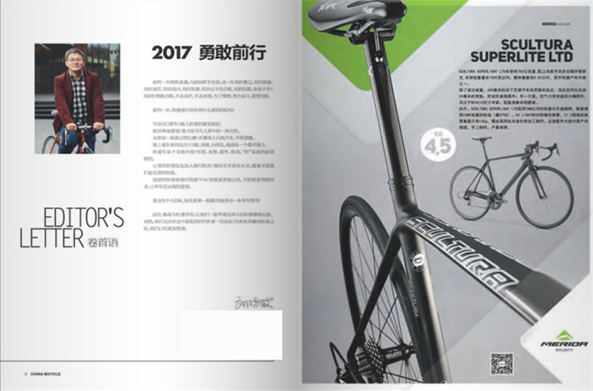 中國自行車協(xié)會和中國輕工業(yè)出版社共同策劃出版的及時本面向騎車愛好者的雜志,定位于戶外達(dá)人、白領(lǐng)、商務(wù)成功人士,雜志致力于通過展示品質(zhì)、特色自行車產(chǎn)品和相關(guān)裝備、附件,以及傳遞自行車旅游、自行車環(huán)保、自行車健身為主的自行車時尚生活方式。