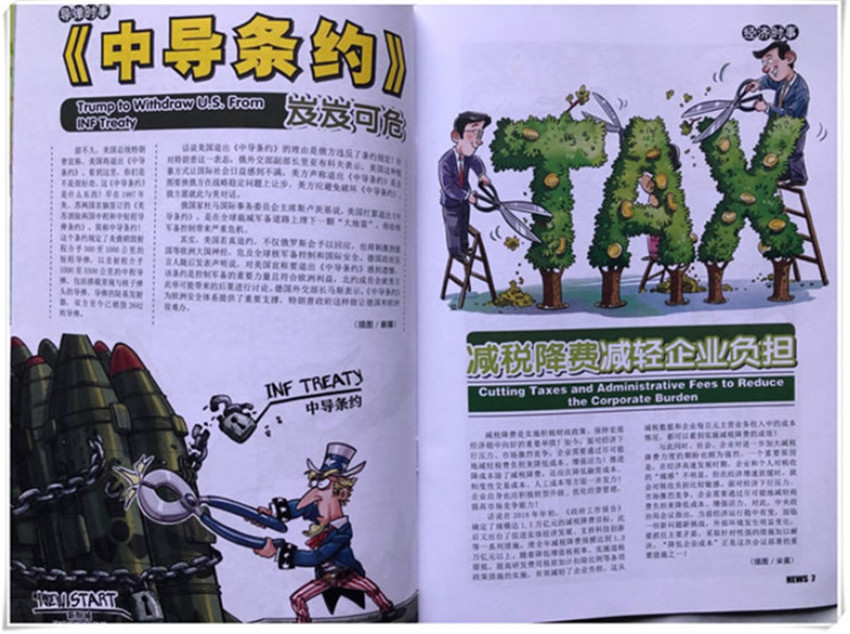 這里沒有枯燥呆板的新聞報道,只有強烈可讀性且圖文并茂的時事童話故事、時事懸疑驚險小說、時事卡通漫畫、國際時事智力游戲和幽默笑話,個性鮮明,是輕松閱讀國內(nèi)外時事及博覽趣聞、科技新知、傳奇八卦好的刊物,來吧,用看動漫的感覺看時事。