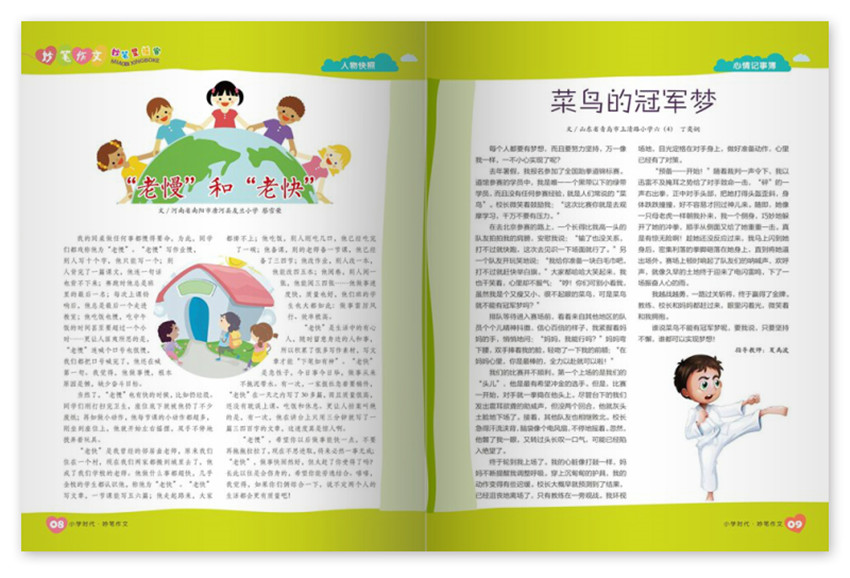 集互動性、趣味性、實用性于一身,以提高學生閱讀、習作水平為目的。每期刊登名師專題指導、作文展示。靈動與技巧同步,評點與素材結合,眾多名師打造系列主題,知名作家進行精彩點評,還新增了微信音頻閱讀的功能,開辟了雜志有聲閱讀的新領域,給小讀者閱讀新體驗。