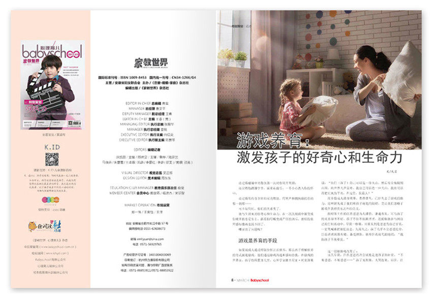 《家教世界·心理育兒》70年代在臺(tái)灣創(chuàng)刊,至今發(fā)行30余年,在華人媒體圈享有聲譽(yù),面向大陸發(fā)行,成為年輕媽媽們“懷孕、生產(chǎn)、育兒”的必讀刊物,改版后的雜志超越“科學(xué)養(yǎng)育”,針對(duì)0-6歲兒童成長(zhǎng)中的各類心理、行為、情感等方面的問(wèn)題,給出專業(yè)見(jiàn)解與指導(dǎo)。 《家教世界·心理育兒》保持對(duì)育嬰親子領(lǐng)域新技術(shù)、新理念的關(guān)注;保持對(duì)重大新聞事件的解釋性報(bào)道;保持對(duì)親子成長(zhǎng)的前瞻性解讀,為0-6歲寶寶的家庭提供“生、養(yǎng)、教”全方位育兒方案,雜志在為年輕父母提供優(yōu)質(zhì)服務(wù)的同時(shí),還致力于全媒體互動(dòng)傳播,為企業(yè)提供專業(yè)精準(zhǔn)的大數(shù)據(jù)營(yíng)銷方案。