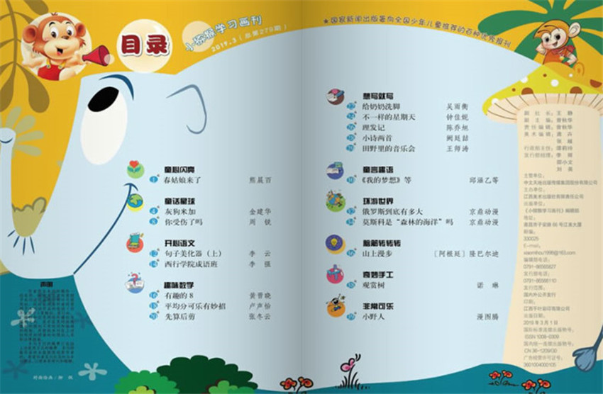 《小獼猴·智力畫(huà)刊》雜志面向小學(xué)低年級(jí)學(xué)生,以“寓教于樂(lè)、寓教于趣”為辦刊特色,圖文并茂,形式多樣、豐富多彩的內(nèi)容有助于小讀者語(yǔ)文、數(shù)學(xué)等學(xué)科的學(xué)習(xí),有助于開(kāi)闊小讀者的視野,使小讀者增長(zhǎng)各方面的知識(shí);下半月版面向小學(xué)高年級(jí)學(xué)生,倡導(dǎo)“快樂(lè)閱讀,開(kāi)心寫(xiě)作”,溫情、有趣、實(shí)用,有助于提高讀者的閱讀能力和寫(xiě)作水平。