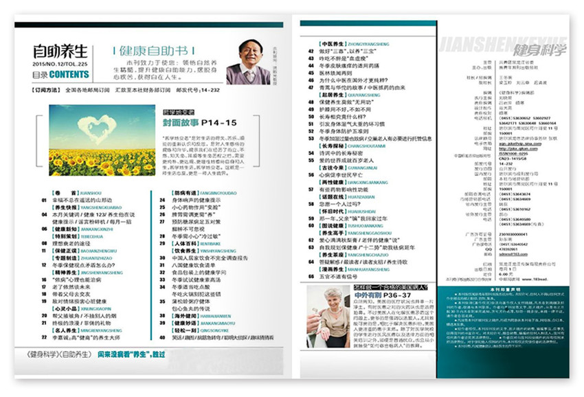 《自助養(yǎng)生》雜志關(guān)注心靈開解,重視身體修煉,提倡行為健康;力邀專家主持專欄,名仕奉獻(xiàn)經(jīng)典,吸納古今,取法中外,觀念領(lǐng)先,知識系統(tǒng),著名健康教育家洪昭光教授領(lǐng)銜健康顧問,每期超值饋贈精制別冊。