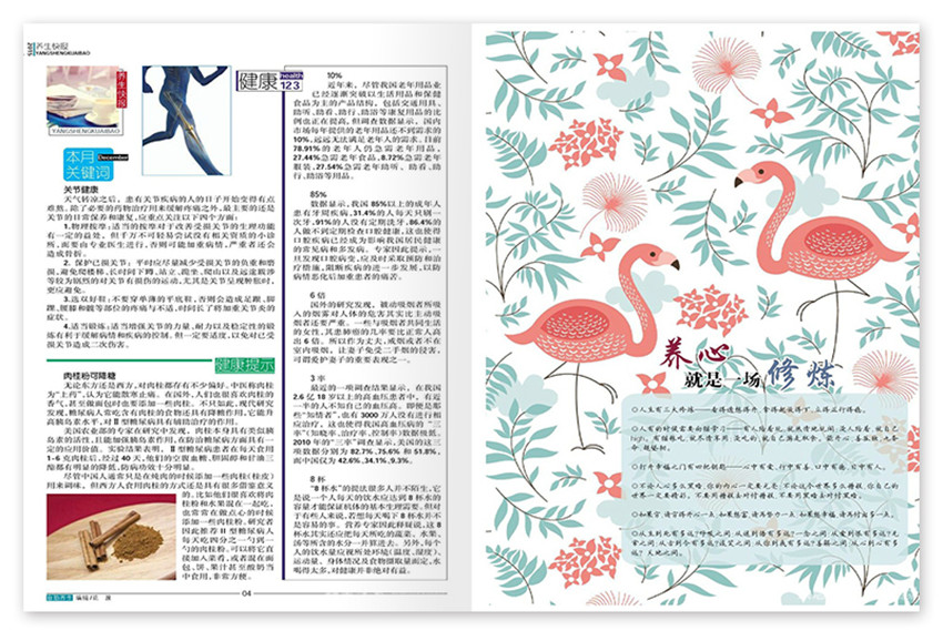 以40-60歲的中老年人為主要讀者群體,定位于有一定經(jīng)濟條件同時關(guān)注養(yǎng)生、有精力有時間有能力的中老年人,除了傳達(dá)“以養(yǎng)防病、以養(yǎng)祛病”的理念外,還會是一本關(guān)注中老年人及家庭成員身心健康的養(yǎng)生期刊。