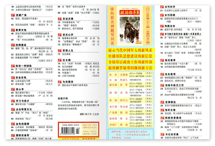 發(fā)行量大,在軍內(nèi)外擁有眾多的讀者,“哪里有部隊(duì),哪里就有《政治指導(dǎo)員》雜志。”實(shí)用性、指導(dǎo)性強(qiáng),是部隊(duì)官兵成長(zhǎng)成才的良師益友。